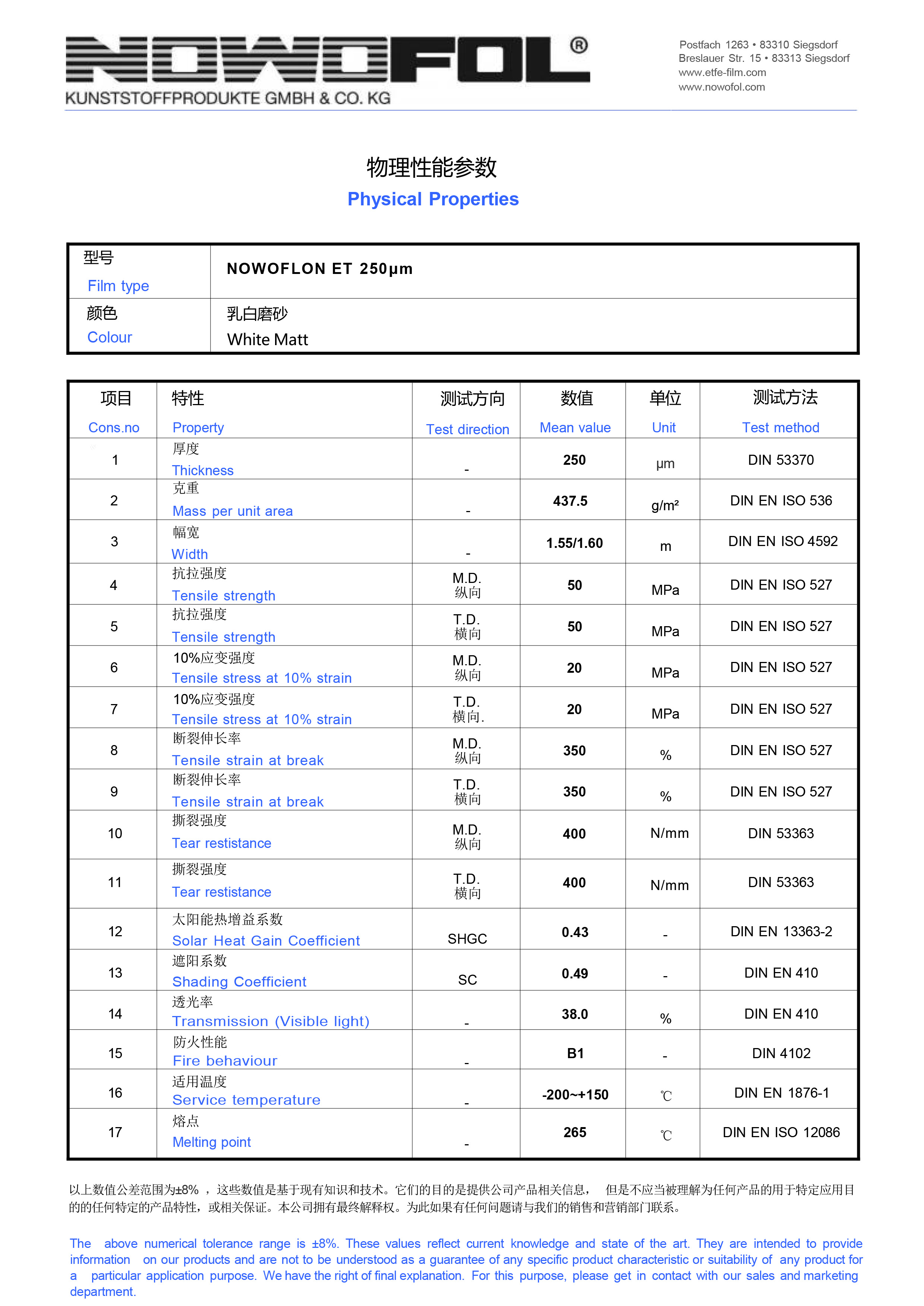 NOWOFLON ET 250μm 透明磨砂