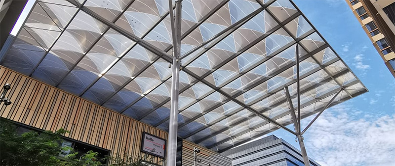 選擇體驗(yàn)。選擇 Vector Foiltec。對(duì)于 Paya Lebar Quarter 天篷,Vector Foiltec 提供了一個(gè)整體解決方案項(xiàng)目。它包括設(shè)計(jì)、工程、鋼結(jié)構(gòu)、我們的 Texlon? ETFE、防墜落系統(tǒng)以及向 BCA 和 MRT 提交的授權(quán)。