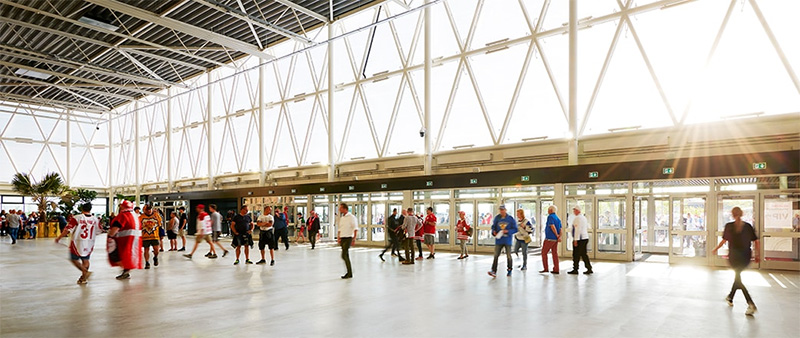 展廳可容納 15,000 名觀眾的音樂會(huì)、13,488 名拳擊和 12,500 名其他體育賽事,如 2010 年歐洲女子手球錦標(biāo)賽。 Texlon? ETFE 外墻和新大廳在 2018 年世界冰球錦標(biāo)賽上按時(shí)完工。