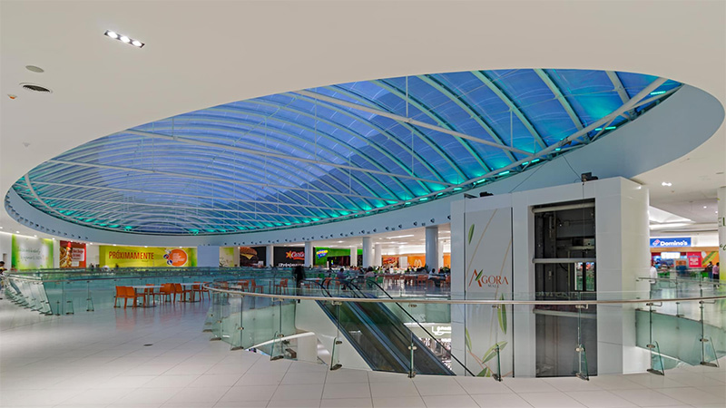 圣多明各的 Agora 購(gòu)物中心是一個(gè)光線充足的購(gòu)物中心,擁有連鎖零售商和精品店,以及一家電影院和超市。它是多米尼加共和國(guó)第一座獲得 LEED 銀級(jí)認(rèn)證的建筑。該認(rèn)證計(jì)劃旨在加強(qiáng)和促進(jìn)可持續(xù)建筑的高性能。購(gòu)物中心包括一個(gè)巨大的 ETFE 圓頂屋頂和其他三個(gè)較小的 ETFE 天窗,總面積接近 2,200 平方米。我們的 ETFE 幫助商場(chǎng)獲得了 LEED 認(rèn)證。